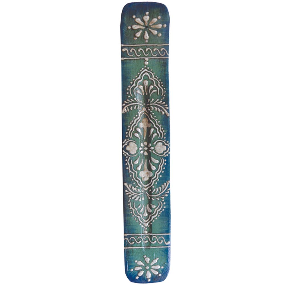 Teal Hand Painted Patterned Mango Wood Incense Stick Ash Catcher