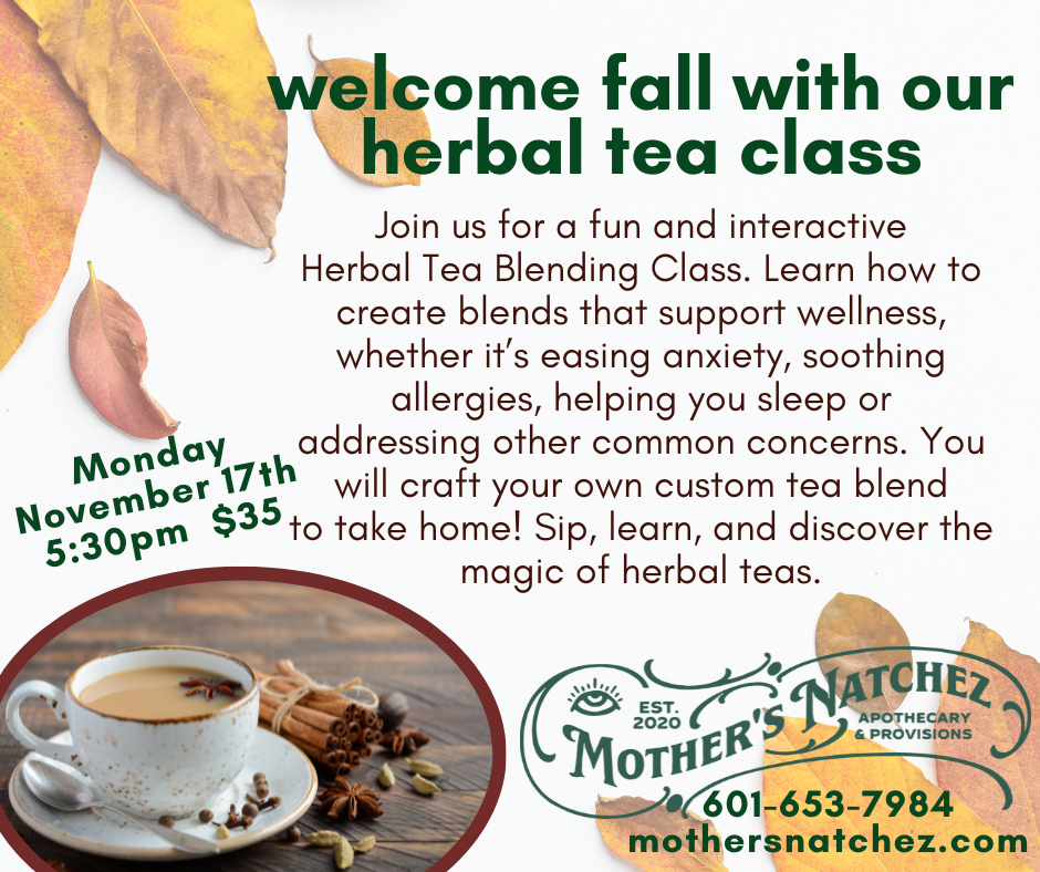 You will also craft your own tea blend in class to take home with you.