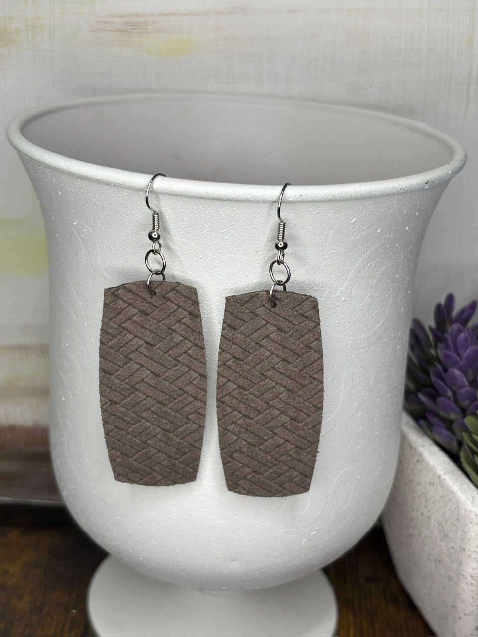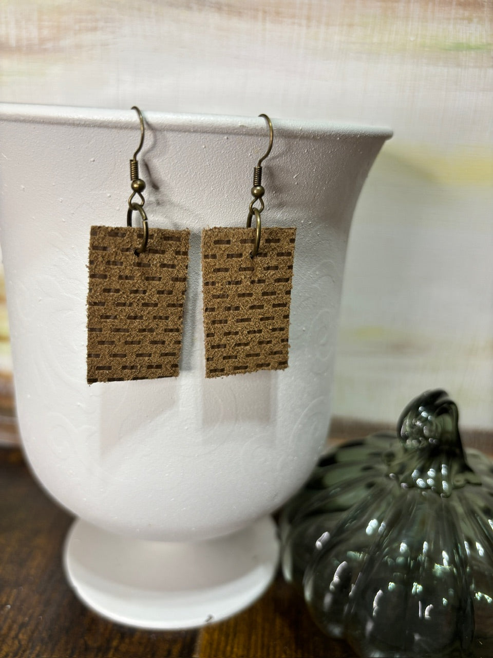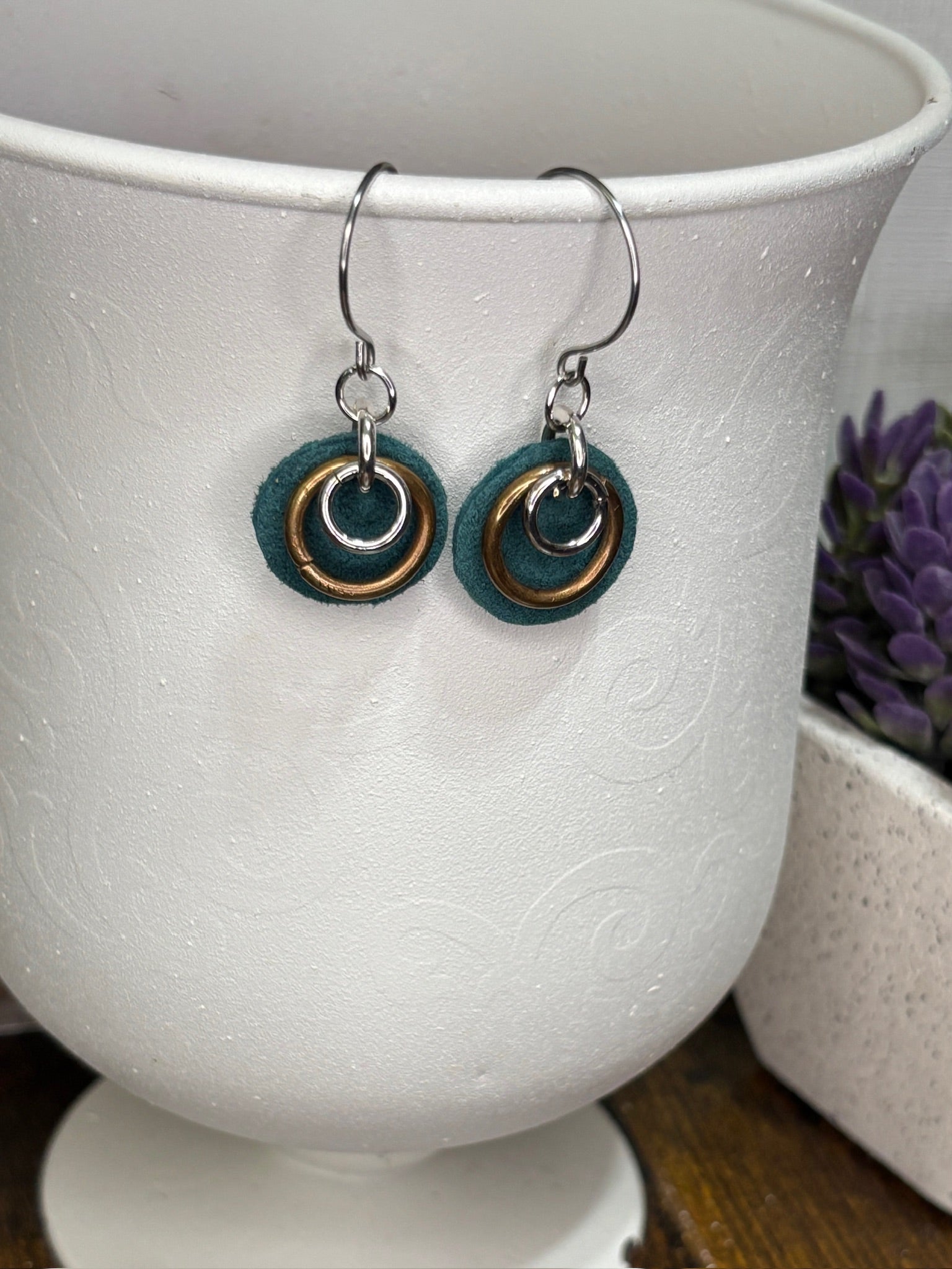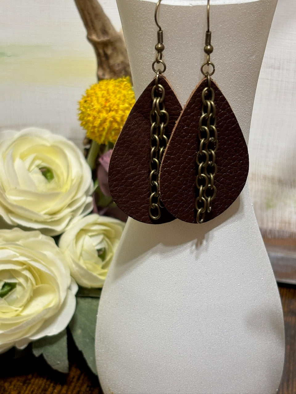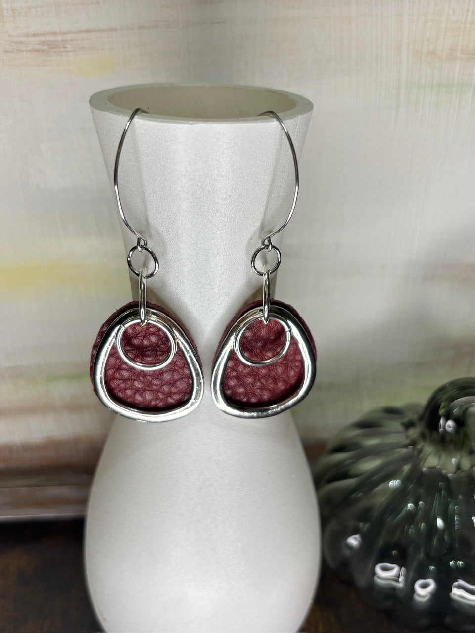 Handmade Leather Earrings | Tear Drop with Gold Hoops | Essential Oil Diffuser