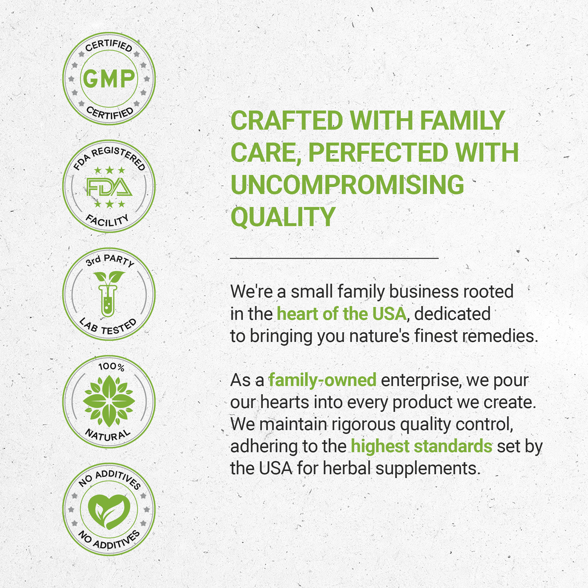 Produced in an FDA-registered, GMP-certified facility, our tinctures are third-party lab tested, vegan, cruelty-free, and proudly made in the USA.