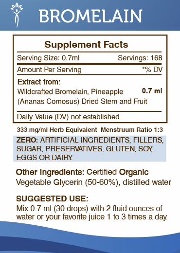Bromelain contains: proteolytic enzymes, vitamins, minerals, and antioxidants. Our Bromelain Tincture is crafted using high-quality ingredients and a meticulous extraction process to preserve potency and nutrients.